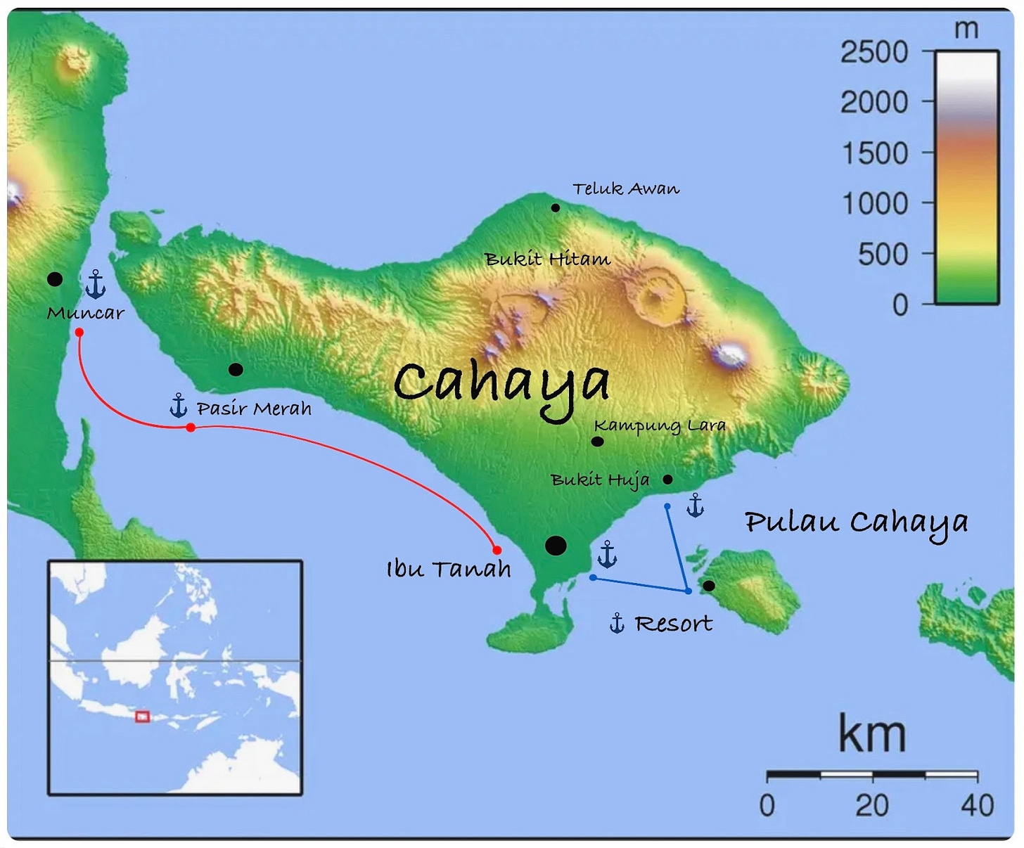 Vor ihr lag Pulau Cahaya, dunkel und friedlich im Abendlicht.