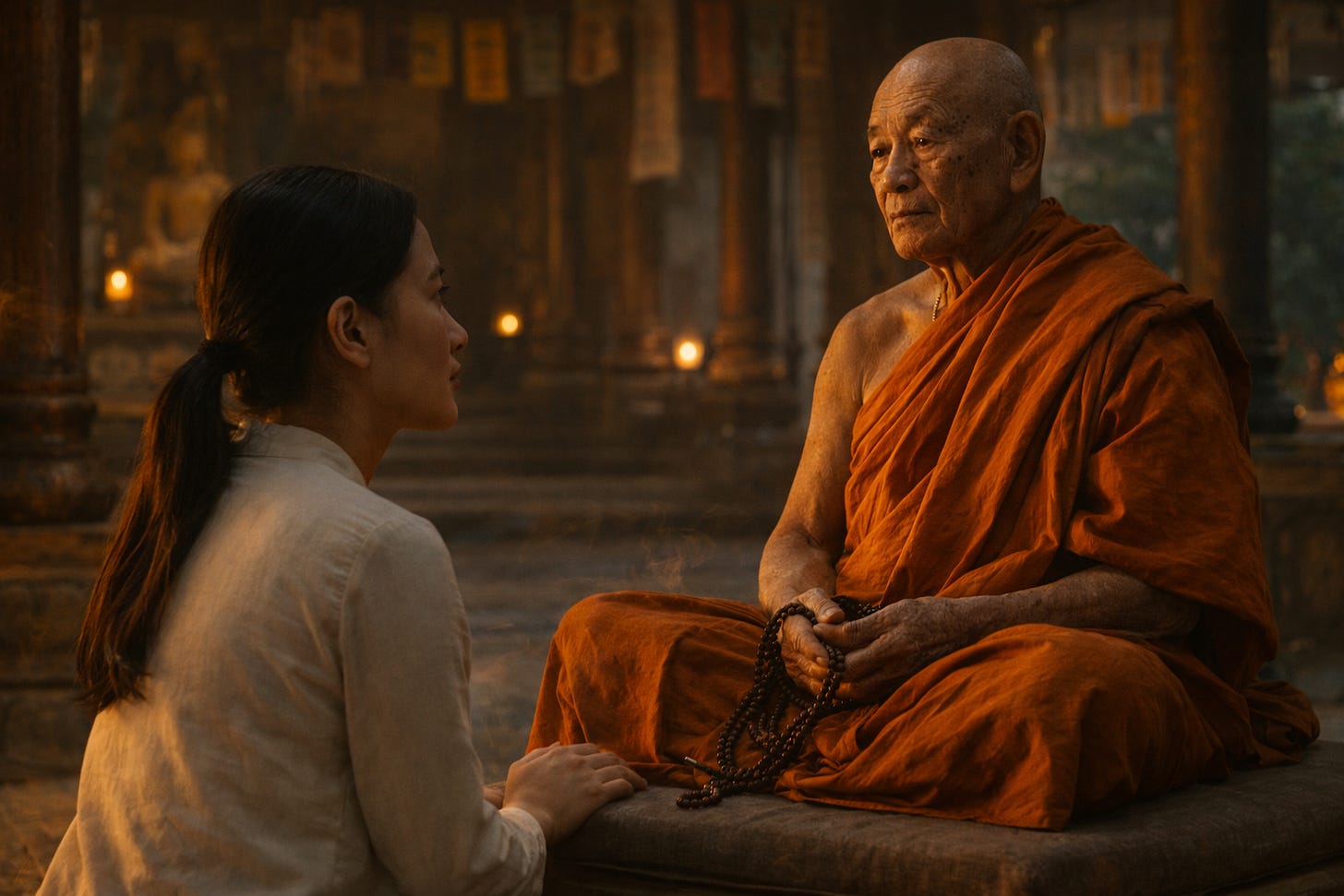 Mei-Li war es gelungen, Bhante Surya zu überzeugen. Der alte Vorsteher hatte sie schweigend angehört, die Hände über der Mala - der Gebetskette zentriert, den Blick in eine Ferne gerichtet, die nur er sah. Dann hatte er genickt, kaum merklich, und es war entschieden.