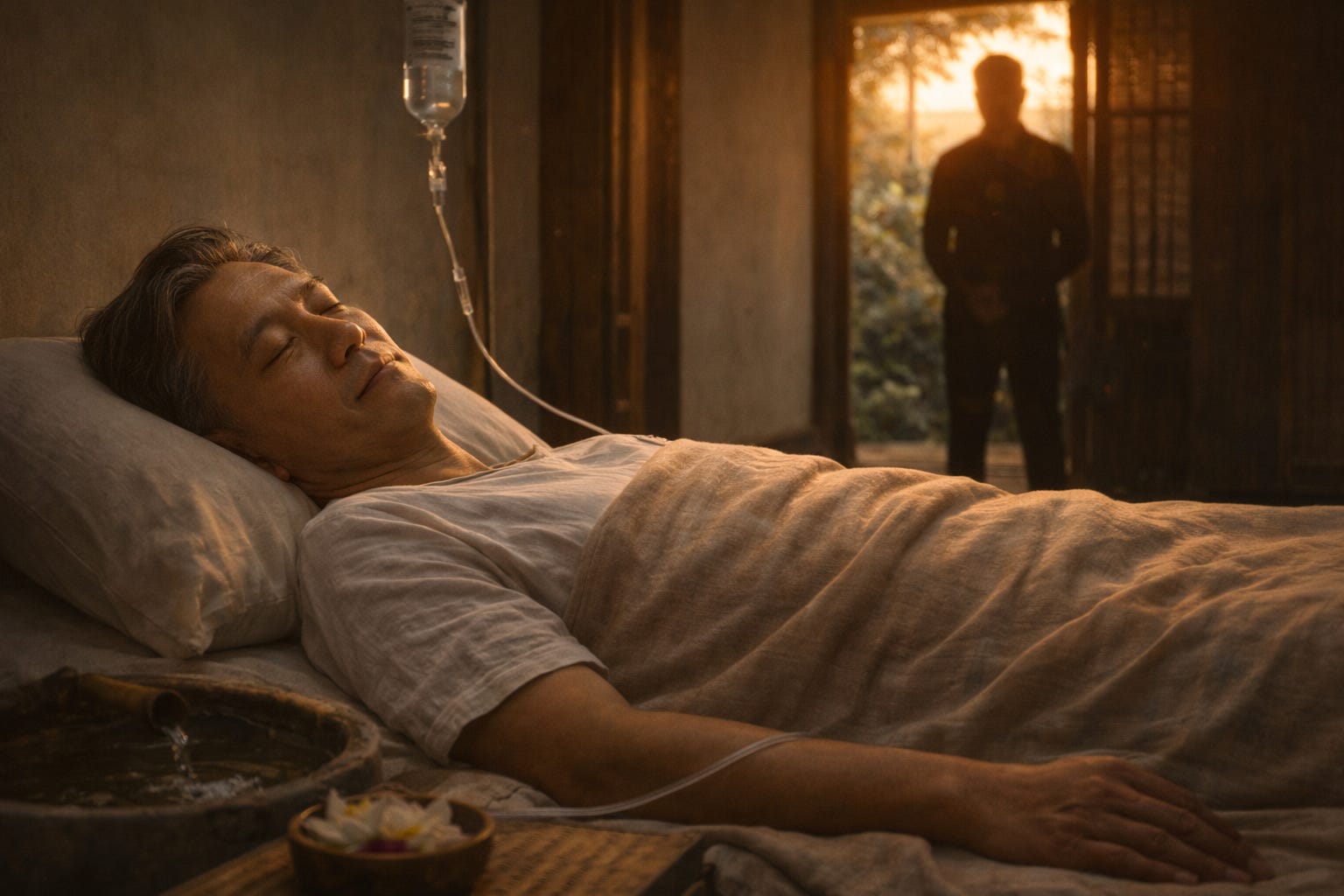 Der Raum war schlicht, beinahe karg: ein Bett, eine Matte, eine kleine Holzschale mit Blüten. Und doch lag in dieser Schlichtheit etwas Tröstendes, etwas, das sich wie Heimat anfühlte.